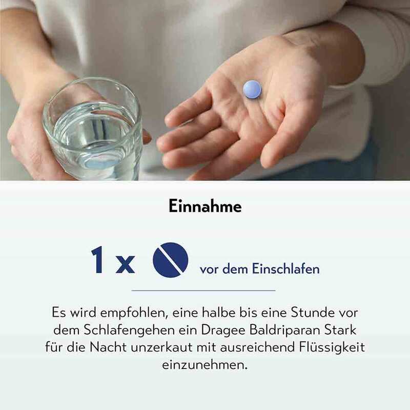 Hinweis für Diabetiker: Eine Einzeldosis Baldriparan Stark für die Nacht (1 überzogene Tablette) entspricht 0,015 BE.