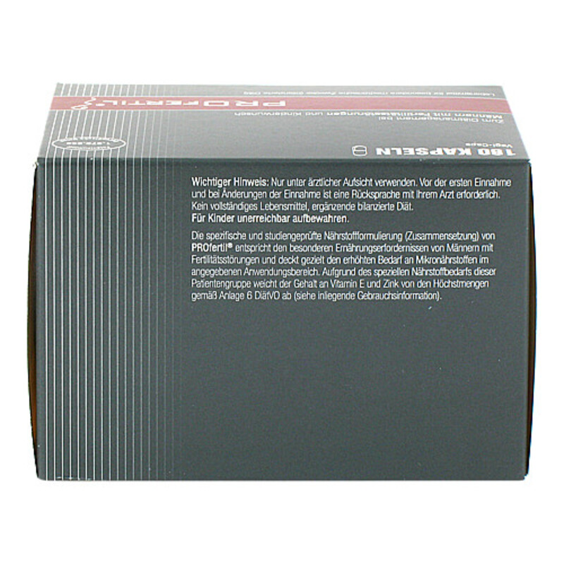 Nur unter ärztlicher Aufsicht verwenden. Vor der ersten Einnahme und bei Änderungen der Einnahme ist eine Rücksprache mit Ihrem Arzt erforderlich. Kein vollständiges Lebensmittel. Die spezifische und studiengeprüfte Zusammensetzung von PROfertil® ist den besonderen Ernährungserfordernissen im angegebenen Anwendungsbereich angepasst und deckt gezielt den erhöhten Bedarf an Mikronährstoffen von Männern mit Fertilitätsstörungen.