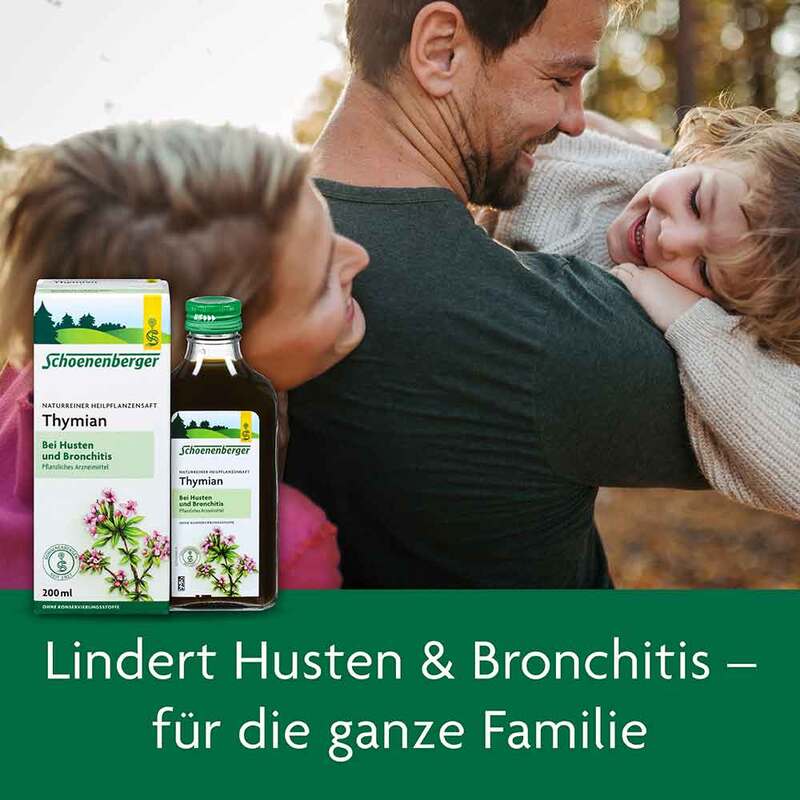 Thymiansaft wirkt außerdem in den oberen Luftwegen stark desinfizierend, ist dabei jedoch ausgesprochen gewebeschonend und reizfrei. Durch seine Bronchospasmolytische, d. h. krampflösende Wirkung im Bronchialbereich bringt Naturreiner Heilpflanzensaft Thymian wirksame Erleichterung bei Husten und bei beginnender Bronchitis.Naturreiner Heilpflanzensaft Thymian ist auch für die Kinderheilkunde geeignet.Er schmeckt aromatisch und ist bei Kindern sehr beliebt.