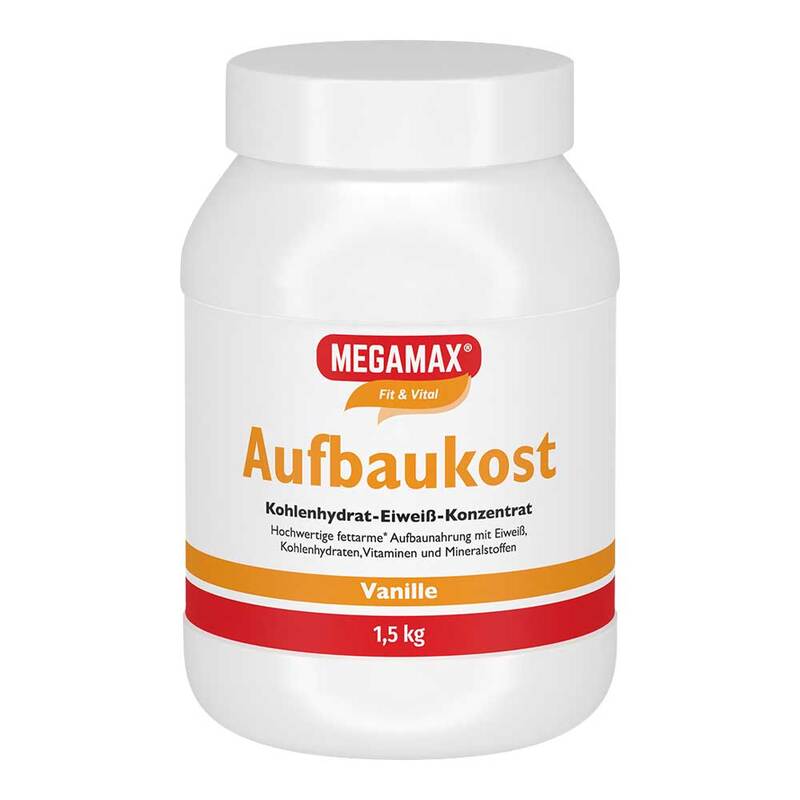 Megamax Aufbaukost ist eine fettarme und leicht verzehrbare Aufbaunahrung mit vielen lebenswichtigen Nährstoffen. Die Aufbaunahrung enthält Eiweiß, Kohlenhydrate, Vitamine und Mineralstoffe. Die im Produkt enthaltenen Proteine tragen zu einer Zunahme und zur Erhaltung von Muskelmasse und zur Erhaltung normaler Knochen bei. Die Mineralstoffe Calcium und Magnesium sorgen zudem in Verbindung mit den Vitaminen B6, B12, Pantothensäure und Niacin für einen normalen Energiestoffwechsel. B-Vitamine unterstützen das Nervensystem und sorgen für normale psychische Funktionen. Biotin, Niacin, Riboflavin leisten einen Beitrag zur Erhaltung gesunder Schleimhäute. Hauptbestandteil der Aufbaunahrung sind Kohlenhydrate.