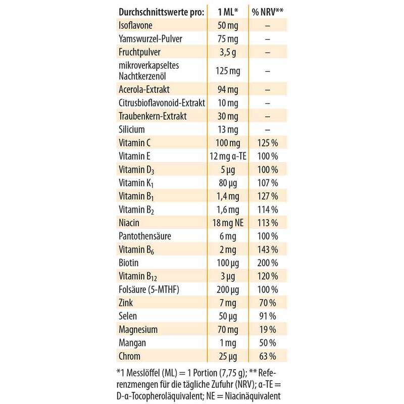 - Mit Soja-Isoflavonen, Nachtkerzenöl und Yamswurzel-Pulver
