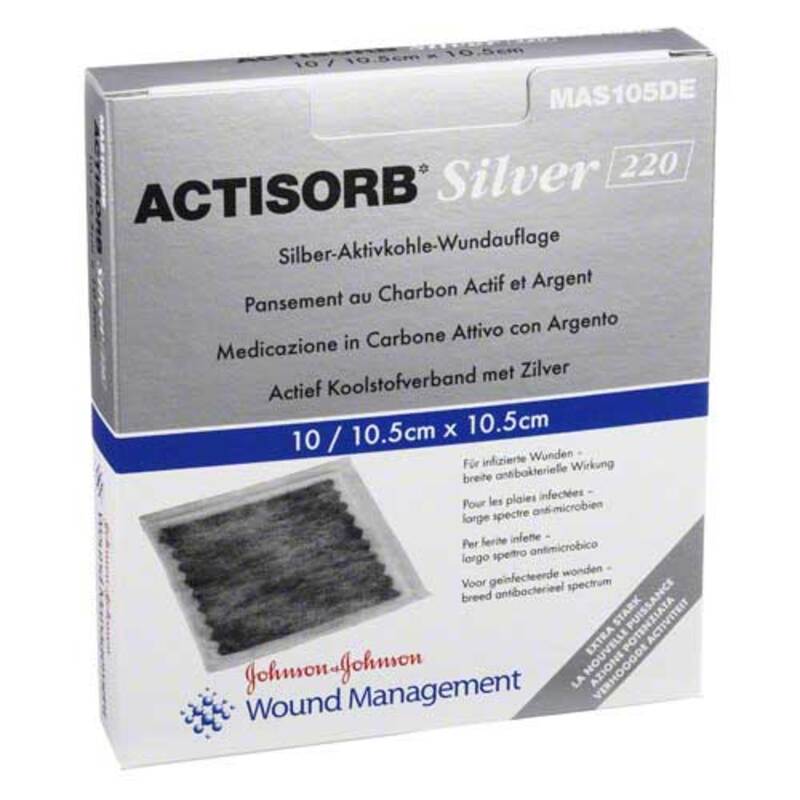 Actisorb 220 Silver 10,5x10,5 cm steril Kompressen, 10 St