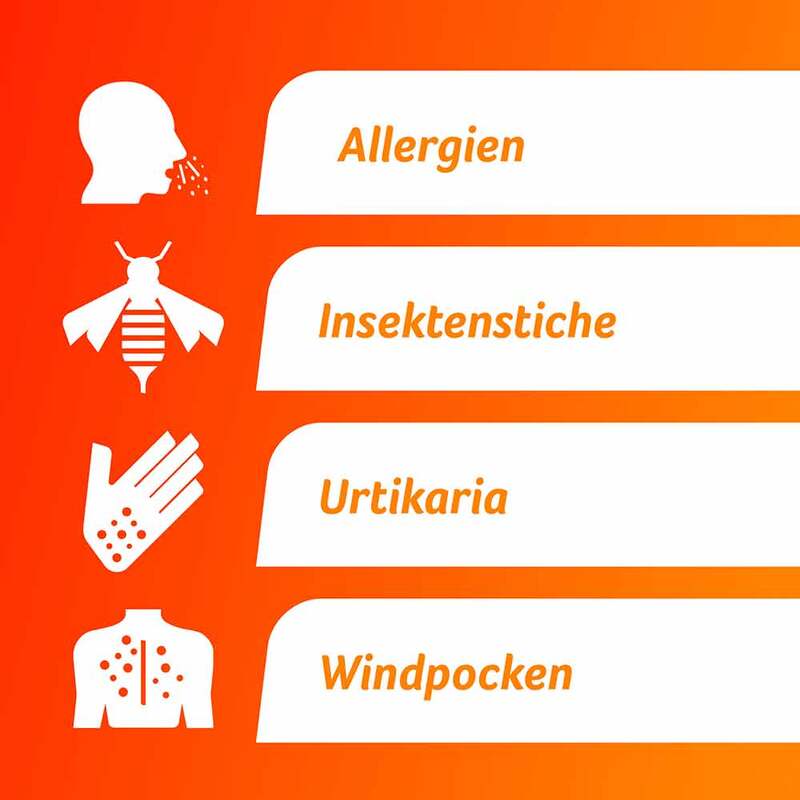 Fenistil Tropfen. Wirkstoff: Dimetindenmaleat. Anwendungsgebiete: Zur symptomatischen Linderung von histaminbedingtem Juckreiz; windpockenassoziiertem Juckreiz bei Kleinkindern; allergischem Schnupfen bei Patienten über 6 Jahren; Nesselsucht (Urtikaria); Insektenstichen. Apothekenpflichtig. Stand: 05/2018. Zu Risiken und Nebenwirkungen lesen Sie die Packungsbeilage und fragen Sie Ihre Ärztin, Ihren Arzt oder in Ihrer Apotheke.