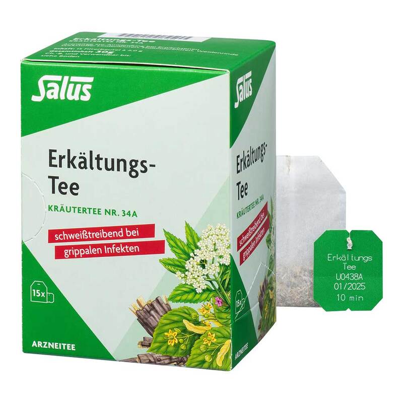 Erkältungs-Tee Kräutertee Nr. 34a Anwendungsgebiete: Fieberhafte Erkältungskrankheiten, bei denen eine Schwitzkur erwünscht ist. Zu Risiken und Nebenwirkungen lesen Sie die Packungsbeilage und fragen Sie Ihre Ärztin, Ihren Arzt oder in Ihrer Apotheke.