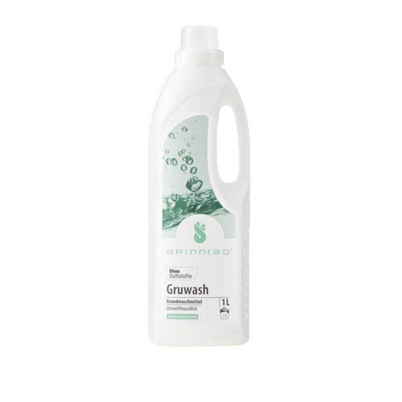 Gruwash - Grundwaschmittel ist als Basis unserer Waschmittel geeignet für alle Wäschearten mit einer effektiven Waschkraft schon ab 30° C und integriertem Vergrauungsschutz. Für Wolle oder Seide und andere empfindliche Feinwäsche empfehlen wir Spinnrad Bawos.
