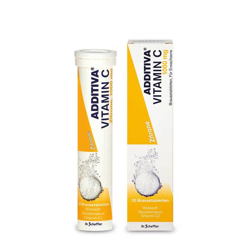 1 Brausetablette Additiva Vitamin C Zitrone enthält 1000 mg Ascorbinsäure.