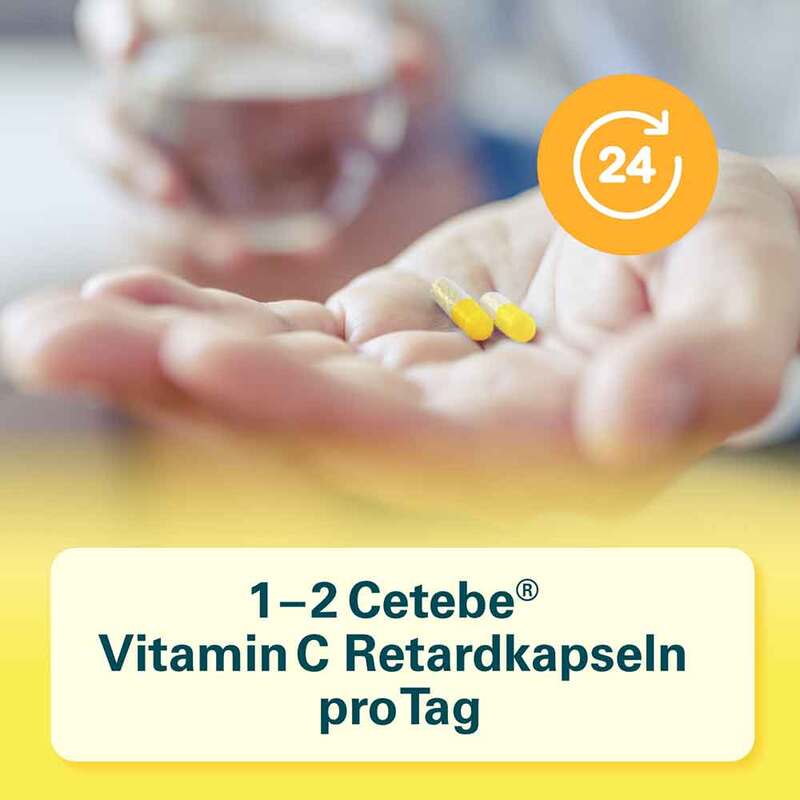 Cetebe® Vitamin C Retard 500 ist ein freiverkäufliches Arzneimittel. Die Cetebe® Vitamin C Retardkapseln sind unzerkaut mit ausreichend Flüssigkeit einzunehmen.
