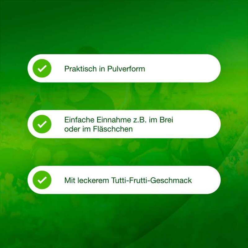 Dank der guten Verträglichkeit, dem kindgerechten Geschmack und der praktischen Pulverform zum Einrühren in Getränke oder Speisen ist Perenterol® Junior das Durchfallmittel für Kinder ab 2 Jahren. Nach Rücksprache mit dem Arzt/der Ärztin kann Perenterol® Junior auch für jüngere Kinder ab 6 Monaten eingesetzt werden.