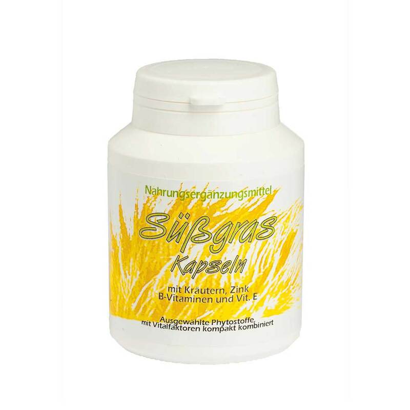 Nahrungsergänzungsmittel mit Süßgras, Zink, B-Vitaminen und Vitamin E.