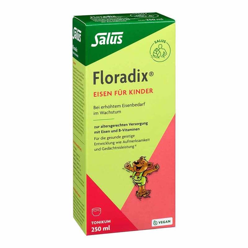Floradix Eisen für Kinder von Salus wurde zur Unterstützung der normalen geistigen Entwicklung bei Kindern entwickelt.* Das Tonikum enthält wertvolle Kräuterextrakte und gewährleistet eine Versorgung mit Eisen(II)-gluconat in gelöster Form. Als Besonderheit enthält Floradix Eisen für Kinder zusätzlich B-Vitamine und natürliches Vitamin C aus der Acerolakirsche.