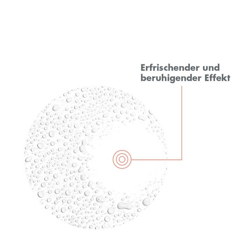 Der mikrofeine Sprühnebel erfrischt gestresste und irritierte Haut, wirkt sofort hautberuhigend und reizlindernd. Empfindliche und zu Trockenheit neigende Haut erhält Feuchtigkeit, wird spürbar weicher und widerstandsfähiger.
