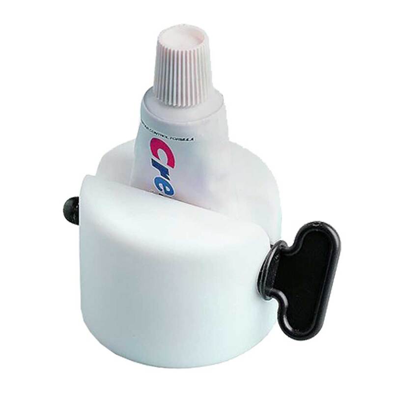Die Anwendung ist für alle Arten und Größen von Zahnpasta-Tuben gedacht bis zu einer Breite von 5 cm. Durch das Drehen der Kunststoffschraube wird die Tube nach oben hin entleert, ohne Reste zu hinterlassen. Die praktischen Saugnäpfe verhindern, dass die Tube wegrutscht. Diese sind zur Anbringung auf glatten Flächen und Fliesen geeignet.