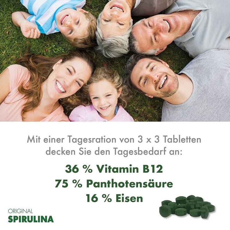 Original Spirulina ist die natürliche Quelle vieler wertvoller Mikronährstoffe wie Vitamin B12, Pantothensäure und Eisen. Sie ist auch für Kinder geeignet.