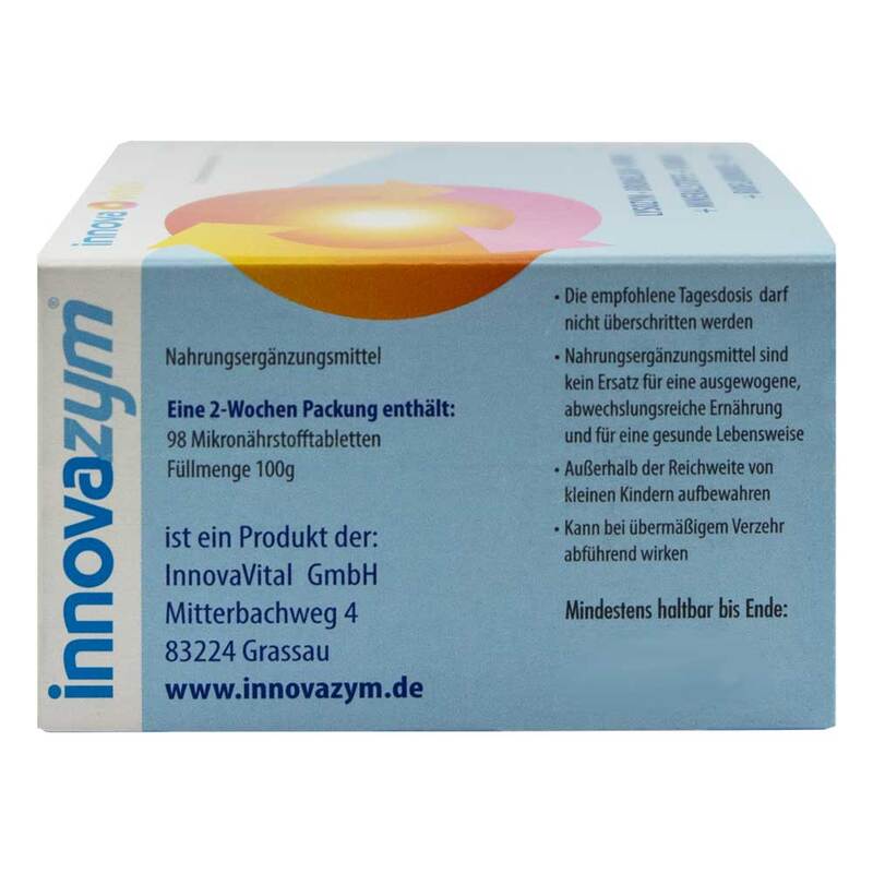 Füllstoff Isomalt, Füllstoff mikrokristalline Cellulose, L-Ascorbinsäure, Füllstoff Hydroxypropylmethylcellulose, Traubenkern-Extrakt (5,5%), Magnesiumoxid, Papain (4,2%), Citrus-Extrakt, Ananasfruchtpulver mit Trägerstoff Maltodextrin, Heidelbeerfruchtpulver mit Trägerstoff Maltodextrin, Bromelain (1,67%), Vitamin E als D alpha Tocopherolacetat, Trennmittel Stearinsäure, Siliciumdioxid und Magnesiumsalze der Speisefettsäuren, Zinkcitrat, Lysozym (0,42%), Coenzym Q10, Trennmittel Mono- und Diglyceride von Speisefettsäuren, Maltodextrin, Stärke, Oligofructose, Gummi Arabicum, Trennmittel Talkum, Vitamin A als Retinylacetat, pflanzliches Öl, Vitamin B6 als Pyridoxinhydrochlorid, Vitamin B1 als Thiaminmononitrat, Vitamin B2 als Riboflavin, Beta-Carotin, Folsäure als Pteroylmonoglutaminsäure, Natriumselenat, Vitamin B12 als Cyanocobalamin, enthält Sulfite