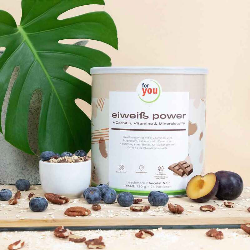 Neben den Hauptbestandteilen Milcheiweiß, Sojaprotein, Molkenprotein, Hühnerei-Eiweißpulver und mikroverkapseltem L-Carnitin sind auch wichtige Vitamine & Mineralien im Eiweiss Isolat Pulver. Neben Calcium und Magnesium ist Zink ein wichtiger Bestandteil der Rezeptur. Zink beeinflusst den Stoffwechsel & viele weitere biochemische Prozesse des Körpers und ist elementar für Immunsystem, Haut und Haare. Eine hochwertige und sorgfältig ausgewählte Mischung aus B-Vitaminen, Vitamin C und Vitamin E rundet das For You Eiweiss Power ab.