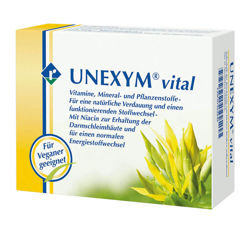 Füllstoff: Cellulose, Maisstärke, Meerrettichwurzelpulver (7 %), Zimtrindenpulver (6 %), Trennmittel: Polyvinylpyrrolidon, L-Ascorbinsäure, Überzugsmittel: Hydroxypropylmethylcellulose, Enzianwurzelpulver (4 %), Schafgarbenkrautpulver (4 %), Löwenzahnkrautpulver (4 %), Ingwerwurzelstockpulver (4 %), Kümmelfrüchtepulver (4 %), Eisengluconat, Zinkgluconat, Maltodextrin, Trennmittel: Talkum und Siliciumdioxid, Nicotinamid, Thiaminmononitrat, Riboflavin, Pyridoxinhydrochlorid, Cyanocobalamin, Calcium-L-methylfolat, Farbstoff: Eisenoxide und Eisenhydroxide, Farbstoff: Calciumcarbonat, Überzugsmittel: Speisefettsäuren (pflanzlich), Zimtaroma.