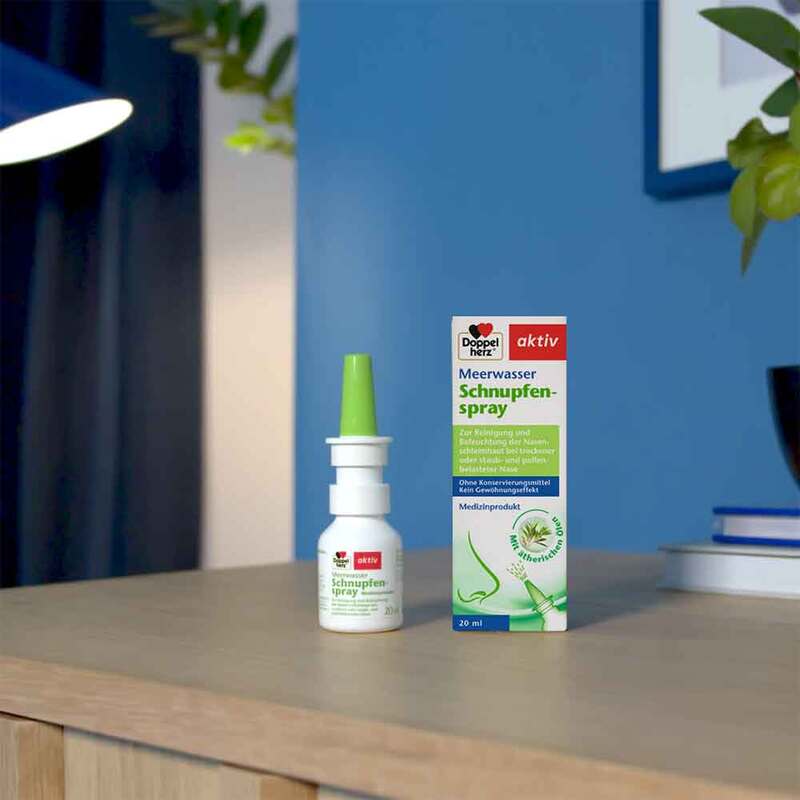Das Doppelherz Meerwasser Schnupfenspray ist mit seinem feinen Sprühnebel eine sanfte Hilfe für Nasenhöhlen, -nebenhöhlen und die empfindliche Nasenschleimhaut, aber auch zur therapiebegleitenden Behandlung der oberen Atemwege.