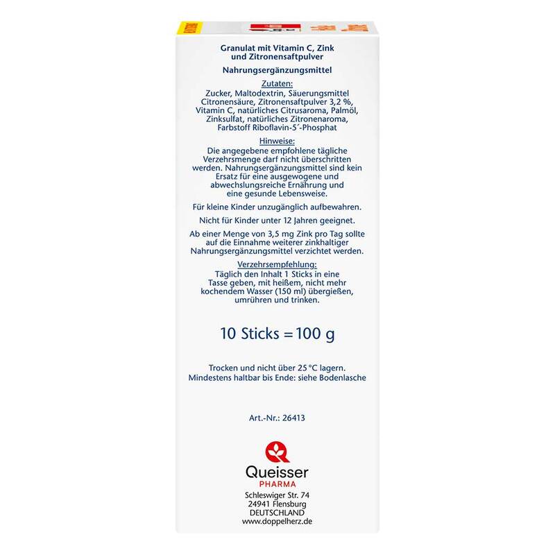 Doppelherz Heiße Zitrone Vitamin C+Zink Granulat, 10 St