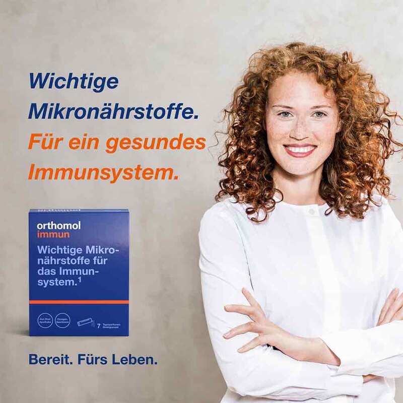 Orthomol Immun Direktgranulat Orange ist ein Nahrungsergänzungsmittel. Es enthält wichtige Mikronährstoffe für das Immunsystem wie z. B. Vitamin A, Folsäure, Vitamin B6, Vitamin B12, Vitamin C, Vitamin D, Selen, Eisen, Kupfer und Zink.* Das Direktgranulat ist ohne Wasser einzunehmen und eignet sich daher hervorragend für Zuhause und unterwegs z.B. auf Reisen.