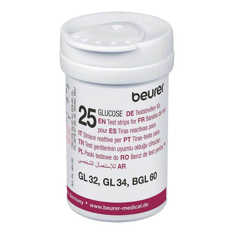 Ein Blutzuckermessgerät ist nicht enthalten. Die Teststreifen sind kompatibel mit den Beurer Blutzuckermessgeräten GL32, GL34 und BGL60.