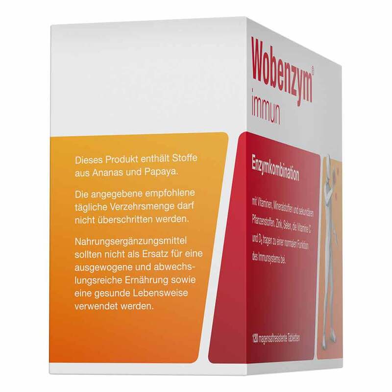 Allergiker-Hinweis: Dieses Produkt enthält Stoffe aus Ananas und Papaya. Wobenzym immun ist laktosefrei (ohne Milchzucker).