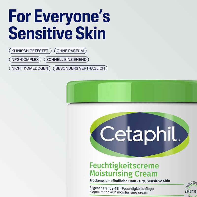 Cetaphil Feuchtigkeitscreme ist eine besonders sanfte und verträgliche Hautpflege mit stärkender und feuchtigkeitsspendender Wirkung. Je nach Hautzustand wird empfohlen, nach der Hautreinigung (z.B. mit der Cetaphil Reinigungslotion) morgens und/oder abends eine ausreichend große Menge auf die Haut aufzutragen. Sobald die Haut wieder ein wenig spannt oder juckt – sie also Durst hat – einfach nachcremen - ein Zuviel gibt es nicht. Sie kennen Ihre Haut am besten!
