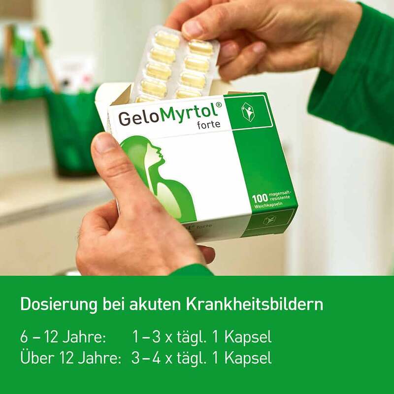 - Das Arzneimittel GeloMyrtol® forte ist hoch konzentriert und die Kapseln sind magensaftresistent, sodass sie sich erst im Dünndarm auflösen. Hier werden die ätherischen Öle freigesetzt und entfalten ihre Wirkung.