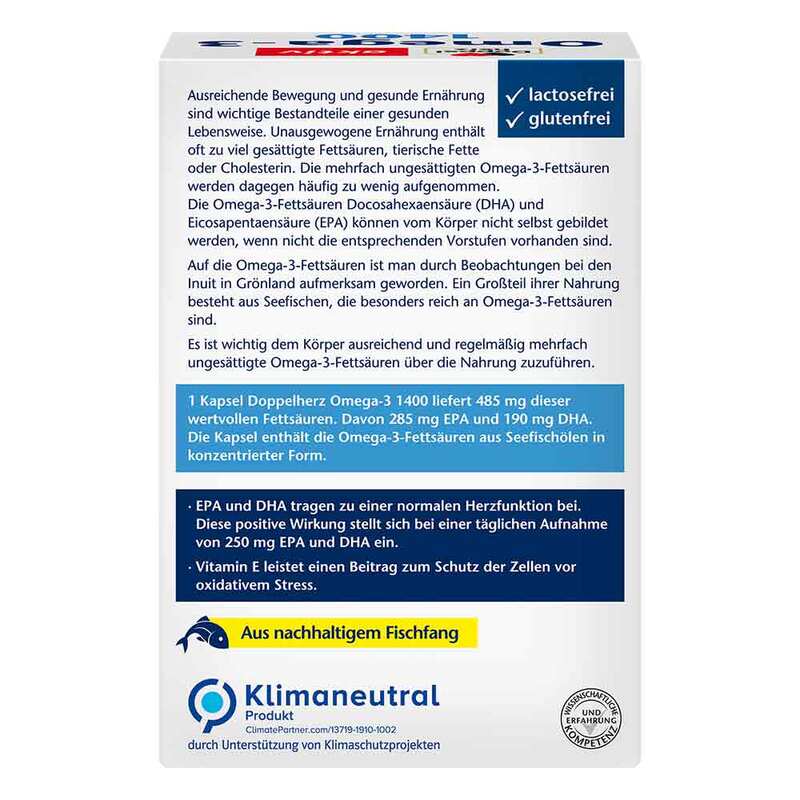 Das hochdosierte Doppelherz Omega-3 1400 enthält seine wertvollen Omega-3-Fettsäuren aus Seefischölen in konzentrierter Form.