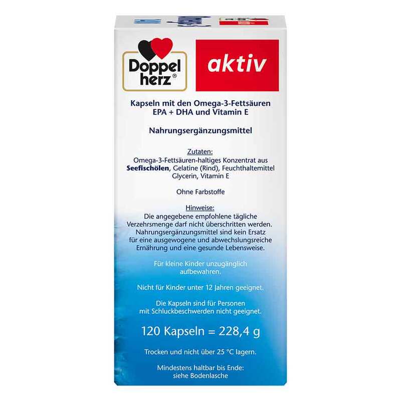 Die Kapseln von Doppelherz enthalten in 1400 mg Seefischöl 35 % Omega-3-Fettsäuren und unterstützen so mit bereits 1 Kapsel täglich die Versorgung mit diesen wertvollen Fettsäuren.