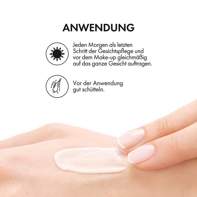 Für optimale Ergebnisse empfiehlt sich die vorherige Pflege der Haut mit dem Vichy Normaderm Anti-Unreinheiten Serum, sowie der Vichy Normaderm Phytosolution Gesichtspflege für unreine Haut. Bei längerem Aufenthalt in der Sonne sollte der Sonnenschutz regelmäßig erneuert werden, um die Schutzwirkung aufrechtzuerhalten. Mittagshitze am besten gänzlich meiden.