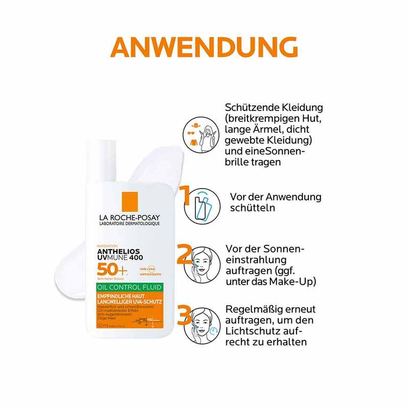 Das Roche Posay Anthelios UVMune 400 Oil Control Fluid LSF 50+ täglich, aber insbesondere vor dem Sonnenbaden im Gesicht auftragen.