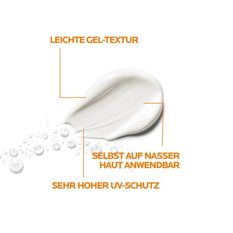 Das La Roche Posay Anthelios Wet Skin Gel LSF 50+ ist ein wasserfestes Sonnengel für den ganzen Körper. Die Sonnencreme für empfindliche und zu Sonnenallergie neigende Haut bietet einen sehr hohen Breitbandschutz gegen UV-Strahlung und Umweltbelastungen, der auch beim Auftragen auf nasser Haut erhalten bleibt.