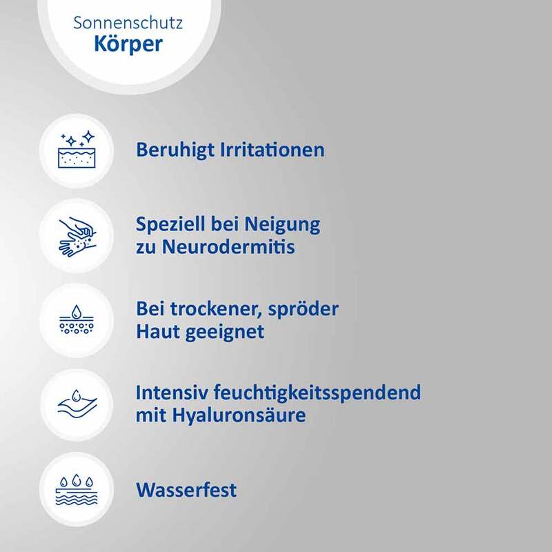 Personen mit Neurodermitis leiden oft unter sehr trockener, rauer Haut. Daher benötigen sie Produkte mit einer speziellen Rezeptur, welche dabei hilft, die Haut nicht nur zu schützen, sondern auch zu pflegen. Zusätzlich sollten Produkte gewählt werden, die keine relevanten Reizstoffe oder Kontaktallergene enthalten. Die Ladival trockene Haut Serie erfüllt die besonderen Ansprüche von zu Neurodermitis neigender & sehr trockener Haut. Dabei verleihen die Produkte ein angenehmes Hautgefühl, ohne zu kleben.