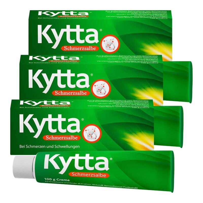 Kytta® Schmerzsalbe. Wirkstoff: Beinwellwurzel-Fluidextrakt. Anwendungsgebiete: Erwachsene: Zur äußerlichen Behandlung von Schmerzen und Schwellungen bei Kniegelenksarthrose degenerativen Ursprungs; akuten Muskelschmerzen (Myalgien) im Bereich des Rückens; Verstauchungen, Prellungen und Zerrungen nach Sport- und Unfallverletzungen. Kinder ab 8 Jahren und Jugendliche: Zur äußerlichen Behandlung von Verstauchungen, Prellungen und Zerrungen nach Sport- und Unfallverletzungen. Warnhinweise: Enthält Erdnussöl, Butyl-, Ethyl-, Methyl-, 2-Methylpropyl- und Propyl- 4-hydroxybenzoat (Parabene), Cetylstearylalkohol, Natriumdodecylsulfat, Duftstoff (Parfümöl) mit Benzylalkohol, Benzylbenzoat, Citral, Cumarin, Eugenol, Geraniol, Hydroxycitronellal, Limonen, Linalool, und Rosmarinöl. Stand: Juli 2023. Zu Risiken und Nebenwirkungen lesen Sie die Packungsbeilage und fragen Sie Ihre Ärztin, Ihren Arzt oder in Ihrer Apotheke.