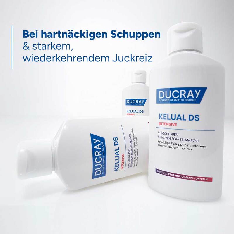 Das Anti-Schuppen Intensivpflege-Shampoo KELUAL DS INTENSIVE entfernt effektiv hartnäckige Schuppen und lindert starken, wiederkehrenden Juckreiz* & Brennen.