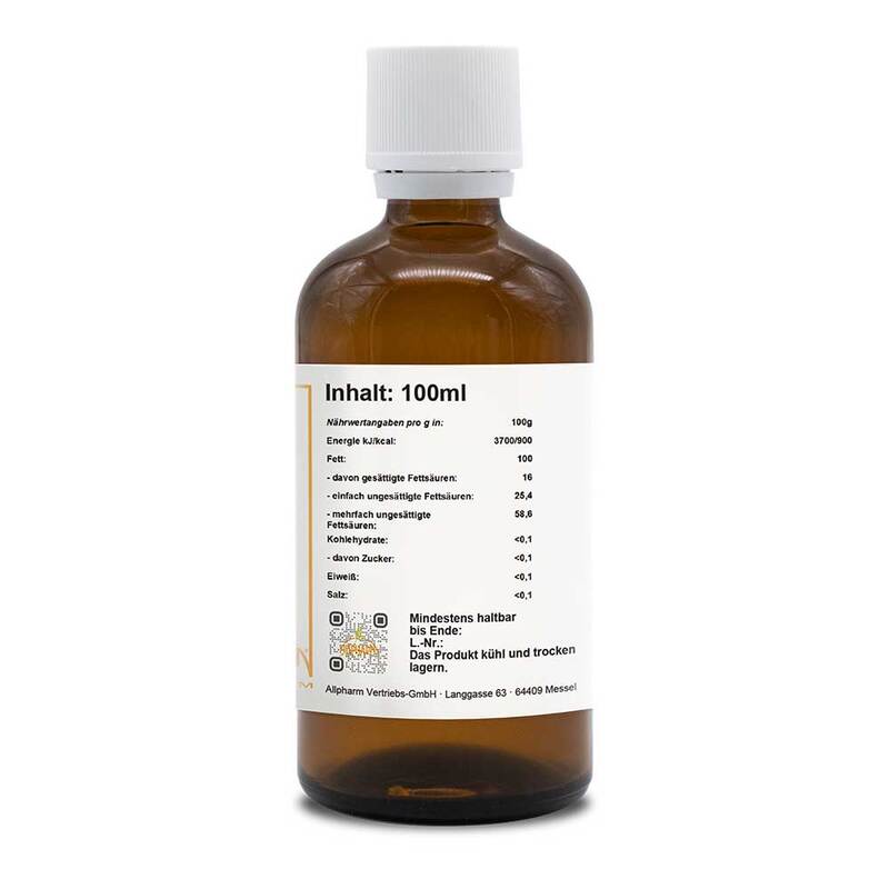 Das gelbe bis dunkelbraune, scharfwürzig schmeckende Öl enthält die wertvollen ungesättigten essentiellen Fettsäuren wie z.B. Linolsäure und Linolensäure und auch 0,5 bis 1,5 % ätherisches Öl.