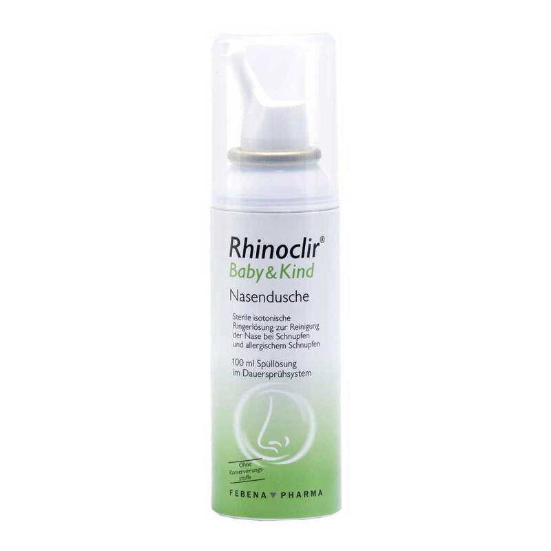 Rhinoclir Baby & Kind Nasendusche wird zur Reinigung der Nasenhöhle von Säuglingen und Kindern sowie zum Lösen von Krusten, Schleim und Borken sowie als begleitende Maßnahme bei Schnupfen und allergischem Schnupfen verwendet. Da Rhinoclir Baby & Kind Nasendusche eine sterile Lösung enthält, ist diese auch zur Anwendung vor und nach Nasenoperationen geeignet. Es sollte jedoch vor dieser Anwendung der Rat des behandelnden Arztes eingeholt werden. Der Sprühkopf wurde den Anforderungen von Säuglingen und Kindern angepasst. Eine sichtbare Verdickung soll das zu tiefe Eindringen in die Kindernase verhindern. Der Sprühnebel ist besonders fein und daher besonders mild in der Anwendung.