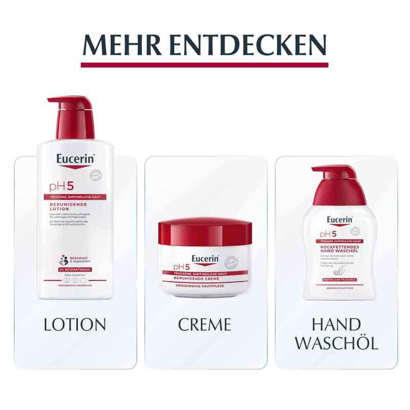 Speziell empfindliche Haut benötigt eine Pflege, die die natürliche Schutzfunktion widerherstellt, denn Umweltreize können leicht Spannungsgefühl, Hautrötungen und -irritationen auslösen. Das Eucerin pH Balance System mit ph5 Citratpuffer stellt den optimalen pH-Wert der Haut wieder her, während 5% Dexpathenol die Regeneration der Haut stimulieren und helfen, sie widerstandsfähiger zu machen.
