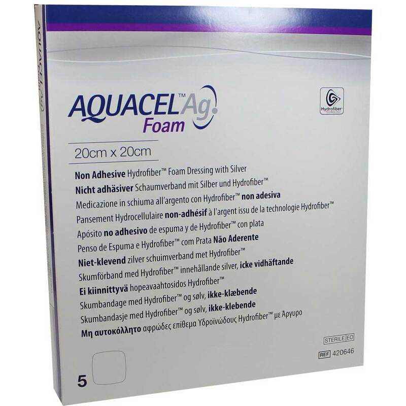 Aquacel Ag Foam nicht adhäsiv 20x20cm Verband, 5 St