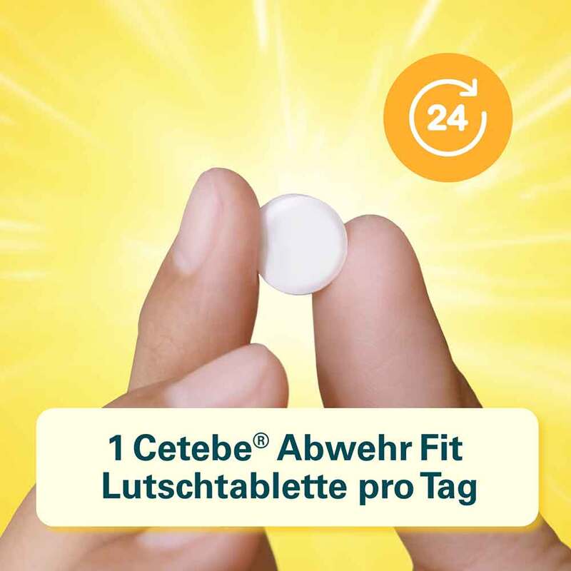 Nehmen Sie eine Cetebe Abwehr Fit Lutschtablette pro Tag ein.