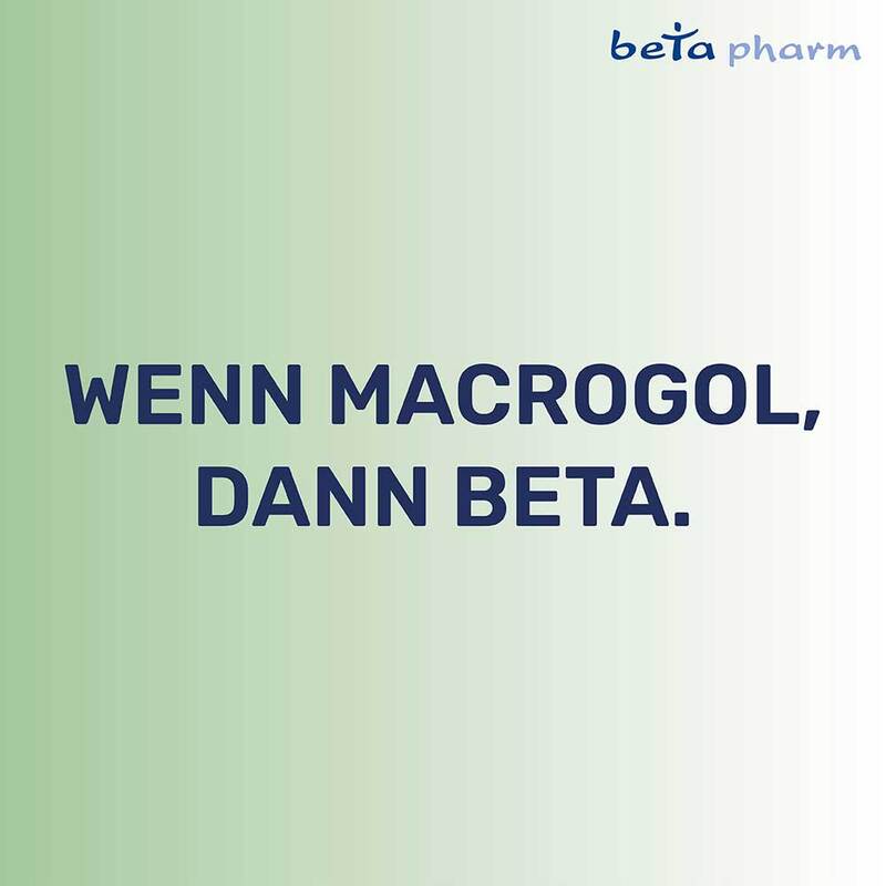 Macrogol beta plus Elektrolyte Pulver zur Herstellung einer Lösung zum Einnehmen. Anw.: Z. Behandlung v. chron. Verstopfung. Warnhinw.: Dieses Arzneimittel enthält 188 mg Natrium (Hauptbestandteil von Kochsalz/Speisesalz) pro Beutel. Dies entspr. 9,4 % der für einen Erwachs. empfohl. max. tägl. Natriumaufnahme mit der Nahrung. Die max. empfohl. Tagesdosis dieses Arzneimittels enth. 564 mg Natrium (Hauptbestandteil von Kochsalz/Speisesalz). Dies entspr. 28 % der für einen Erwachs. empfohl. max. tägl. Natriumaufnahme mit der Nahrung. Sprechen Sie mit Ihrem Arzt oder Apotheker, wenn Sie über einen längeren Zeitraum 3 Beutel tägl. benötigen, insbesondere, wenn Sie eine kochsalzarme (natriumarme) Diät einhalten sollen. Dieses Arzneimittel enth. 0,8 mg Sorbitol pro Beutel. Zu Risiken und Nebenwirkungen lesen Sie die Packungsbeilage und fragen Sie Ihre Ärztin, Ihren Arzt oder in Ihrer Apotheke. betapharm Arzneimittel GmbH, Augsburg