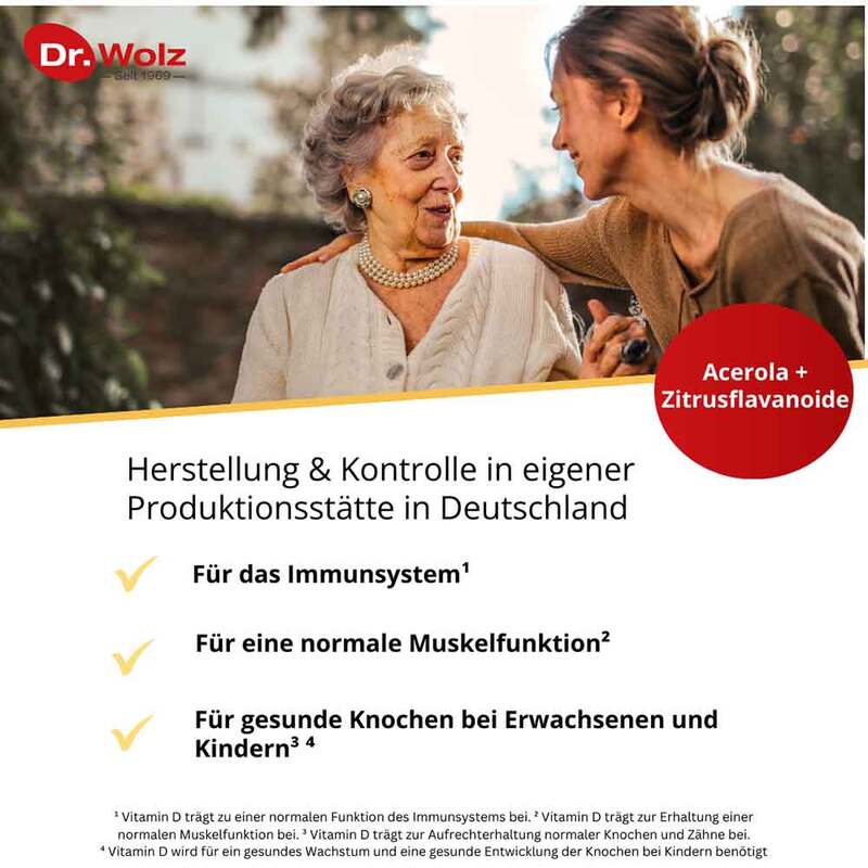 Das Produkt ist frei von tierischen Bestandteilen und somit bei veganer und vegetarischer Ernährung geeignet. Eine Kapsel enthält Vitamin D2 (1000 I.E.) 25 µg und Vitamin C aus der Acerolakirsche 48 mg. Die Kapselhülle besteht aus Cellulose.