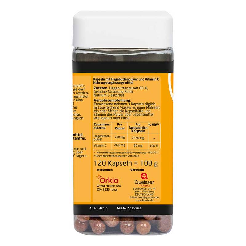 Für die Herstellung von Litozin Ultra Hagebuttenpulver Kapseln wird deshalb das Fruchtfleisch und die Schale der Hagebutte sorgfältig von den Kernen und den stark reizenden Haaren getrennt, sehr schonend zu Pulver verarbeitet und dann in die Kapseln eingefüllt. Um die wertvollen Inhaltsstoffe der Hagebutte zu erhalten, müssen hohe Temperaturen beim Herstellungsprozess vermieden werden.