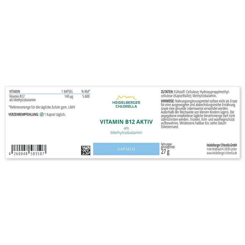 Die Kapseln enthalten Vitamin B12 in der aktiven Vitaminform Methylcobalamin. Sie sind für Veganer und Vegetarier geeignet.