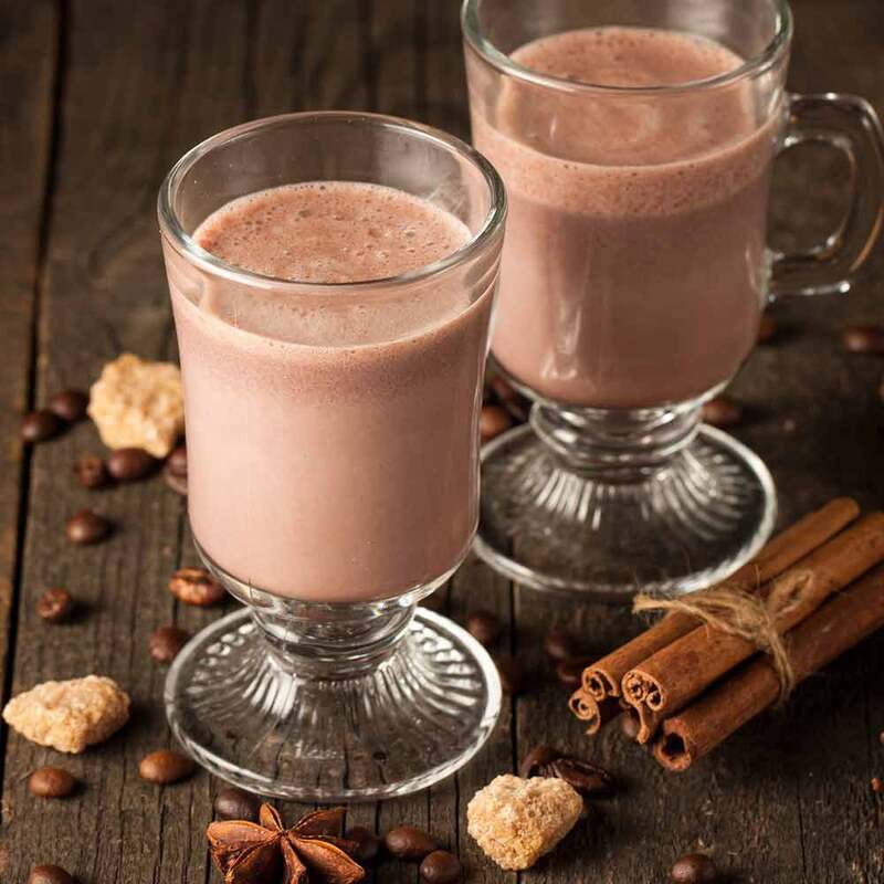 43 g AminoBase (entspricht ca. 4 gestrichenen Messlöffeln) mit 200 ml Soja-Drink (mit 2,3 g Zucker und 120 mg Calcium pro 100 ml) anrühren. Nach Geschmack mit SteviaBase süßen.