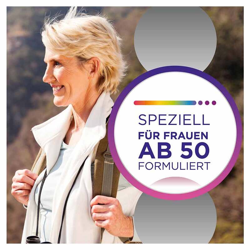 Die Formulierung ist speziell auf die Bedürfnisse von Frauen ab 50 abgestimmt - zur optimalen Ergänzung Ihrer täglichen Ernährung. Mit nur einer Tablette pro Tag decken Sie den Tagesbedarf vieler Vitamine, Mineralstoffe & Spurenelemente.