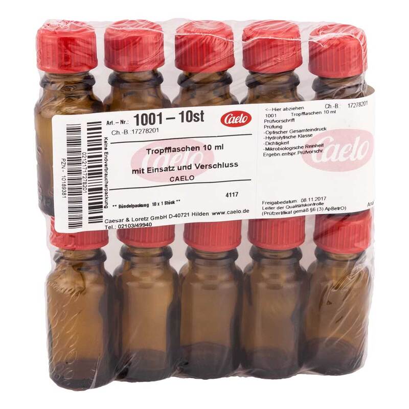 Tropfflasche 10 ml mit Einsatz + Verschluß braun, 10 St