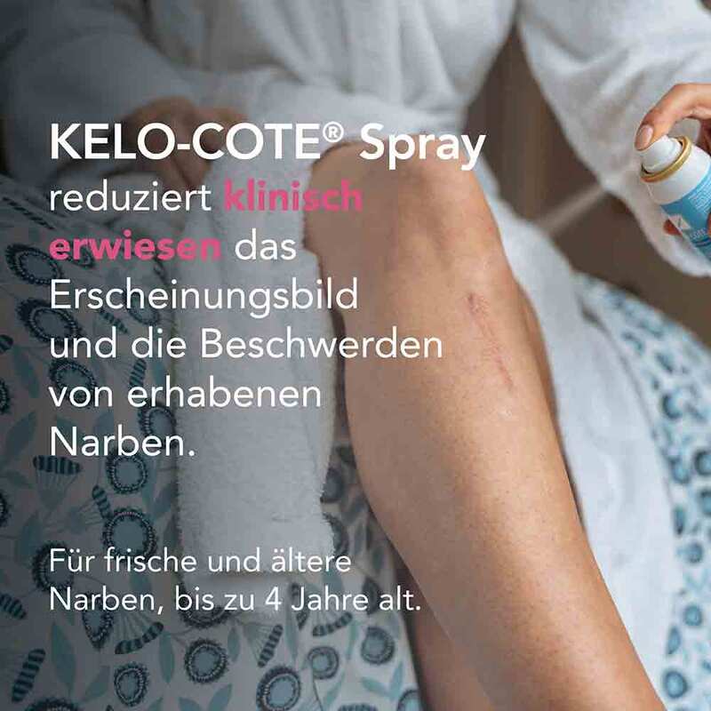 Kosmetika und mineralischer Sonnenschutz können aufgetragen werden, sobald KELO-COTE® Narbenspray getrocknet ist. KELO-COTE Narbenspray ist für die Behandlung von frischen und ältere, hypertrophen und keloiden Narben bestimmt, die durch allgemeine chirurgische Eingriffe, Verletzungen, Wunden und Verbrennungen entstanden sind. KELO-COTE® Narbenspray ist für Kinder und Menschen mit empfindlicher Haut geeignet.