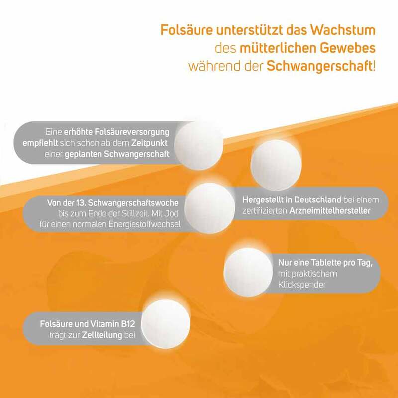 Nahrungsergänzungsmittel mit 400 µg Folsäure, 150 µg Jod und 10 µg Vitamin B 12