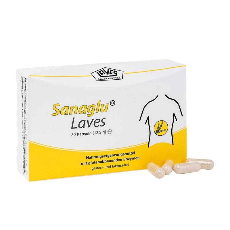Sanaglu ist ein Nahrungsergänzungsmittel mit einer Kombination aus verschiedenen glutenabbauenden Enzymen.Die aus natürlich vorkommenden Mikroorganismen (Aspergillus niger, Bacillus subtilis) gewonnenen Enzyme sind bereits im Magen aktiv.